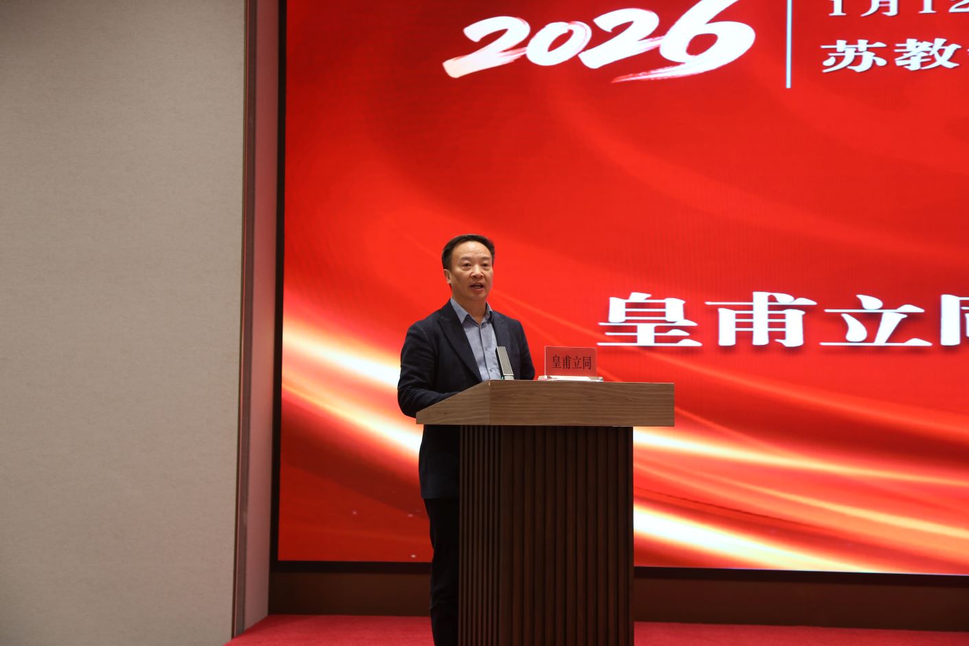 皇甫立同在致辞中阐释了项目背景与目标,并对学员提出四点期望:一要提高站位,深刻把握“领航”的时代内涵,自觉践行教育家精神,将其内化为价值追求与行为准则;二要潜心研修,珍惜此次集中学习机会,通过理论提升、专题研究与实践探索,实现专业能力的深刻升华;三要勇于担当,发挥“关键少数”的示范引领作用,将所学转化为带动区域与学科发展的实际动力;四要严格自律,发扬团队协作精神,最终形成一批可示范、可推广的成果,展现江苏领航名师的良好风貌。