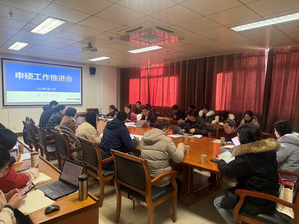 为全面凝聚共识、压实责任,全力推进硕士学位授予单位申报工作,2026年1月21日,学校在草场门校区教科研楼503室召开申硕工作推进会。党委常委、副校长梅景辉主持会议并作重要部署,学科办、申硕办全体成员,相关职能部门负责人,各学位点负责人与工作人员参加会议。