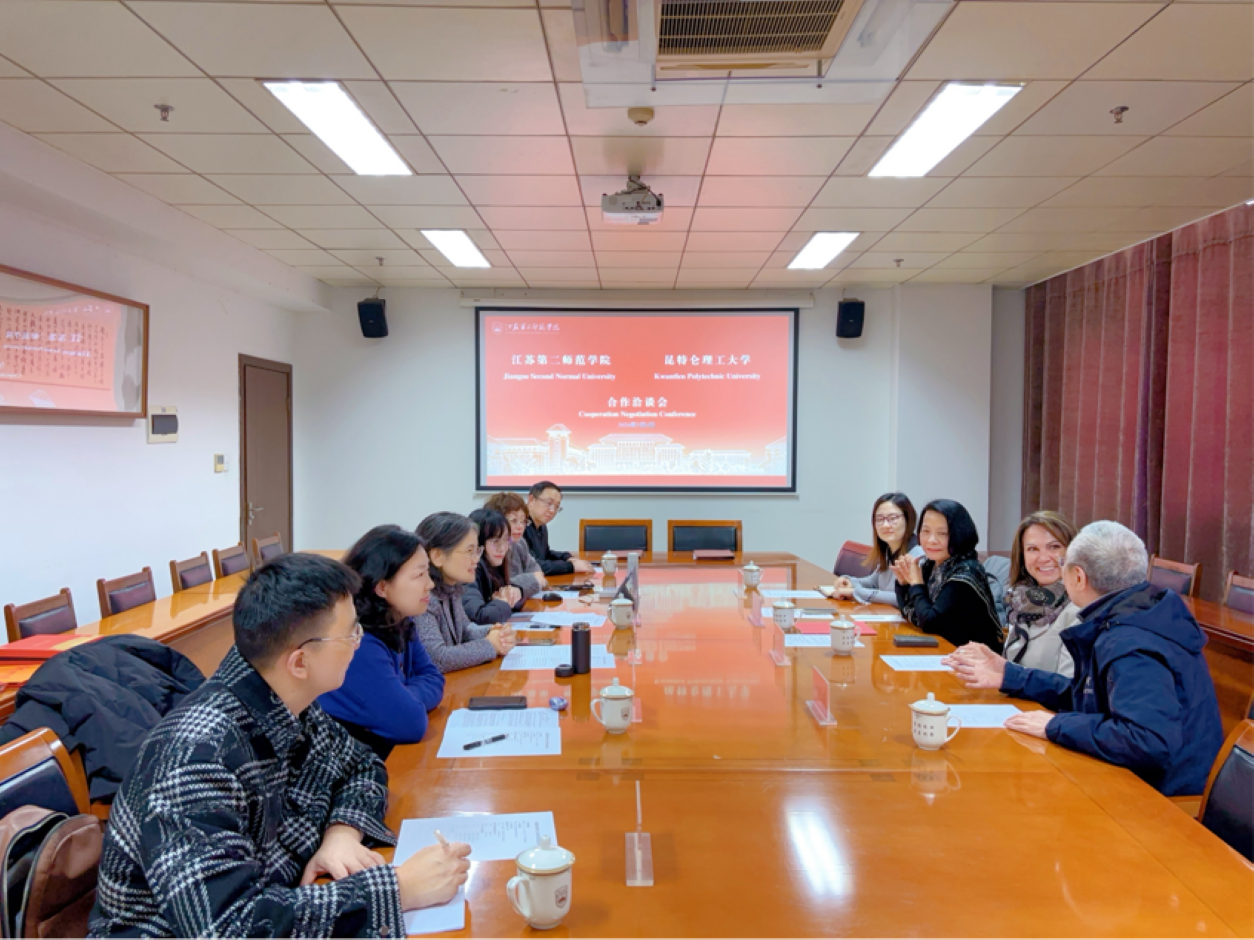 为持续推进国际化办学进程,拓宽中外教育合作渠道,近日,我校与昆特仑理工大学合作洽谈会在草场门校区顺利举行。昆特仑理工大学国际事务协理副校长Carole St. Laurent、中国事务代表Jenny Luo等出席会议。校党委常委、副校长赵玉蓉出席接待,国际合作与交流处及地理科学学院代表参加会议。