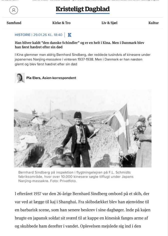 近日,丹麦最大严肃报纸详尽报道了江苏第二师范学院传媒学院师生关于伯恩哈德·辛德贝格(Bernhard Sindberg)英雄事迹的研究成果 。该报道在丹麦社会引发巨大反响,点击量持续走高,向全丹麦展示了中国团队为铭记历史、珍爱和平所做的努力 。